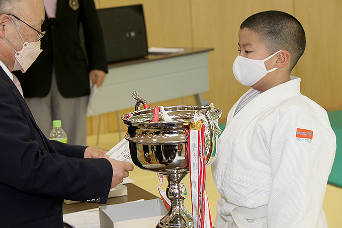 最優秀選手賞は小学3年生の近藤正悠選手(三条柔道倶楽部)が選ばれた。横山容司郎審判長は「初心者だが試合の礼、姿勢がすごく良かった」と受賞理由を説明。「僕らも彼を見習いたい」と讃えると会場から大きな拍手が贈られた。