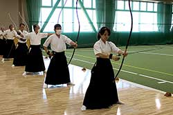 延べ49人が出場し、団体戦・個人戦で競い合い、参加された選手が1射1射、集中して弓を射る姿には息を吞んだ。